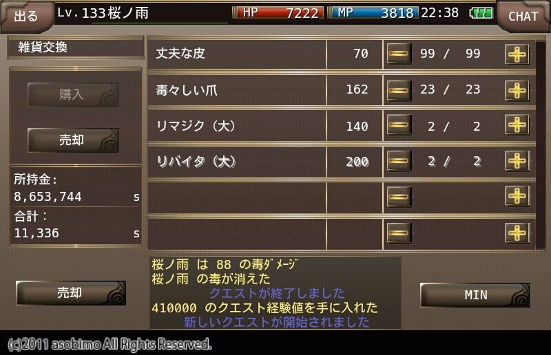 でも、ドロップアイテムの「丈夫な蔓」は売らないでおくと、