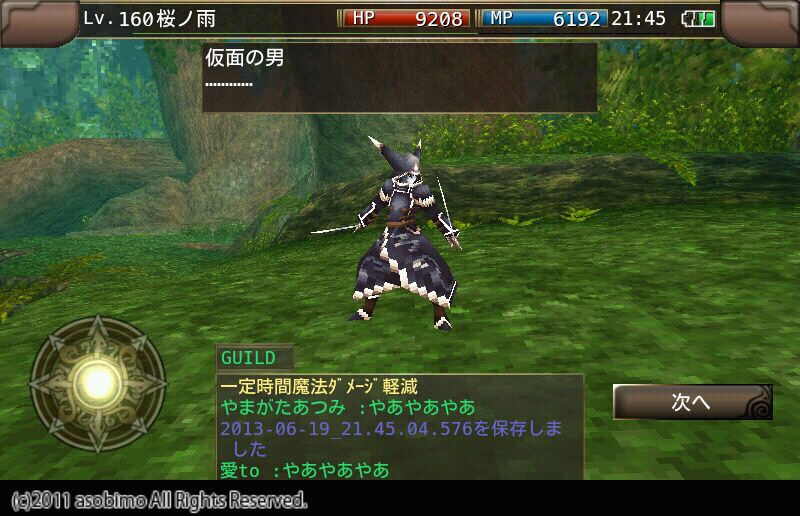 エウジの森(127.57)付近で仮面の男Lv200と戦闘、会話イベント